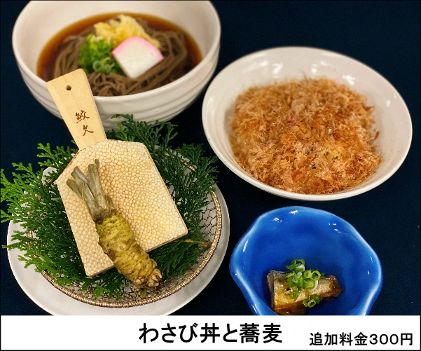 NHK「ブラタモリ」~#105天城越え~にも登場致しました【わさび丼】が 伊豆ハイツゴルフ倶楽部レストランにて新メニューとしてご用意いたしました。 世界農業遺産に登録されました、伊豆天城山系で栽培された山葵を磯海苔とかつを節が盛り付けられたご飯に擦りおろし、醤油をかけてお召し上がりください。 なお、山葵の仕入れの都合上、数量限定とさせて頂きますが、事前予約をチェックインの際フロントにて受けたまわります。